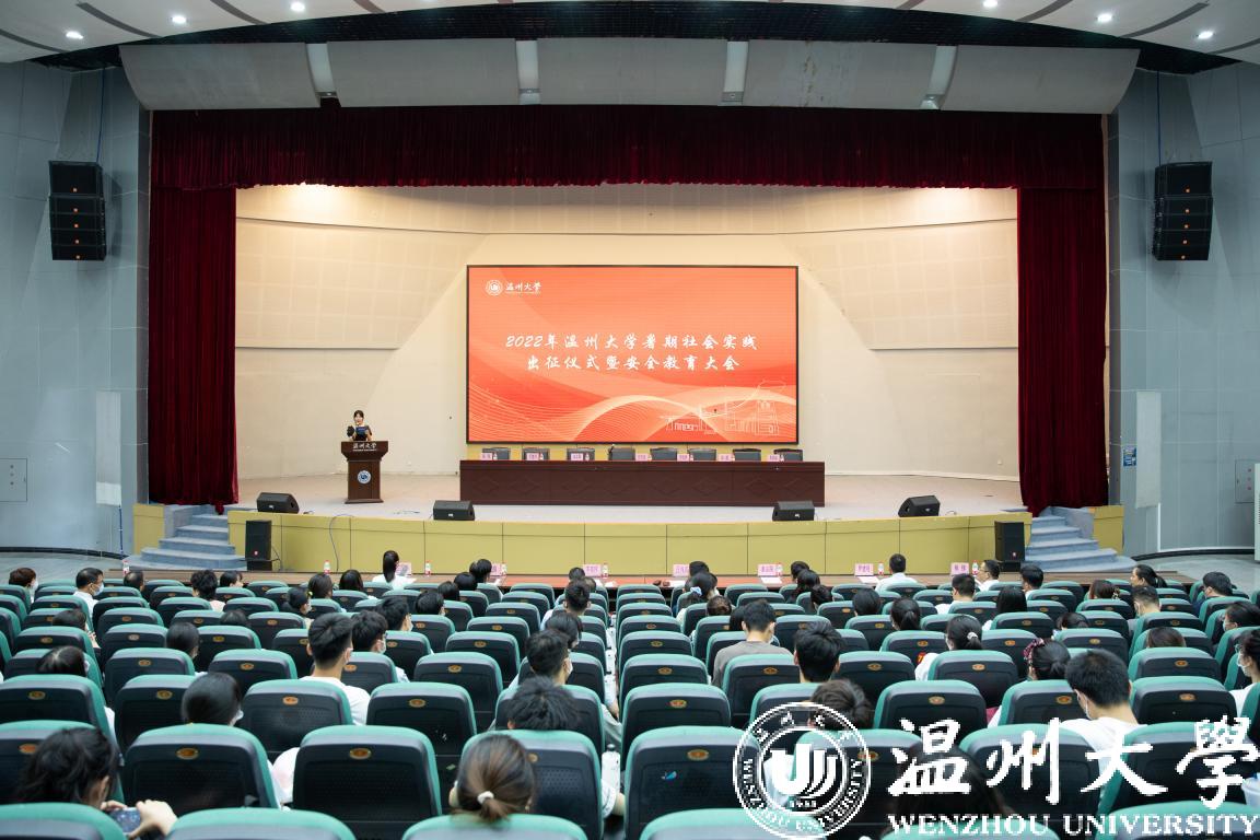为深入学习宣传贯彻习近平新时代中国特色社会主义思想,贯彻落实习近平总书记关于青年工作的重要思想,持续深入推进“双百双进”活动,引导和帮助广大青年学生上好与现实相结合的“大思政课”,积极助力我省“高质量发展建设共同富裕示范区”,7月1日,万象城手机网页版登录入口2022年暑期社会实践出征仪式暨安全教育大会举行。校党委副书记庄兴忠,组织部、宣传部、教务处、研工部、学工部、招就处、团委等部门相关负责人,各学院分管书记、团委书记,全校暑期社会实践队代表300余人参加了出征仪式。