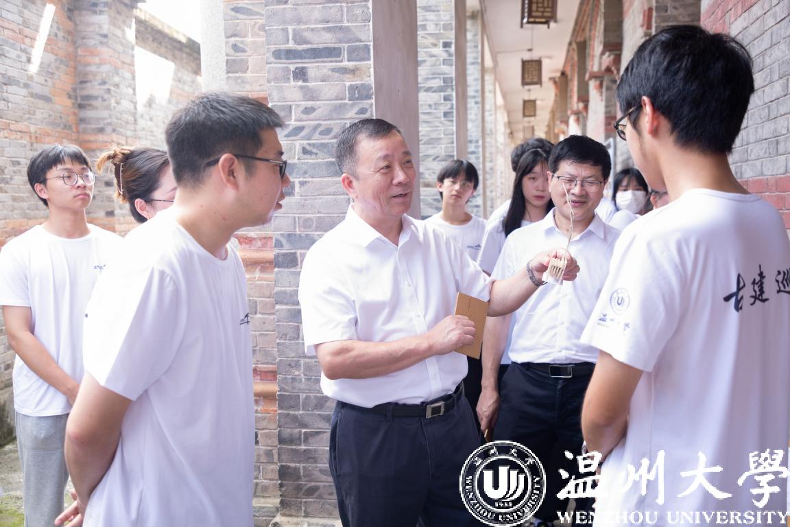 7月5日,校纪委书记杨林书一行赴温州市文成县培头村民族小学,看望慰问人文学院“畲情之约”和建筑工程学院“浙风十礼”暑期社会实践队师生,文成县团委、文明办相关领导陪同慰问。杨林书希望实践队全体成员能够珍惜社会实践这个“大思政课堂”,将实践“基地化”,在实践中助力当地经济社会发展。