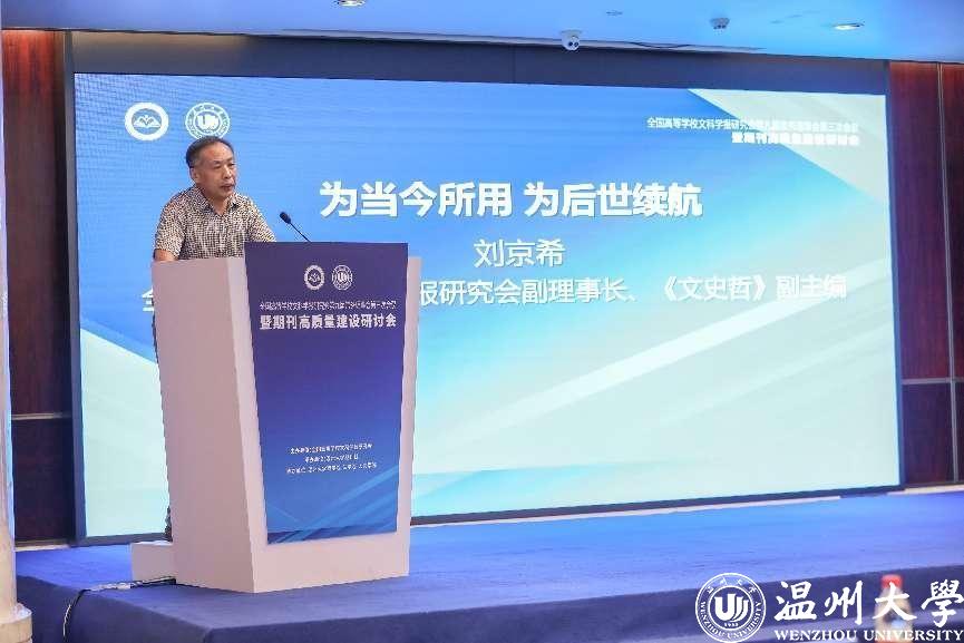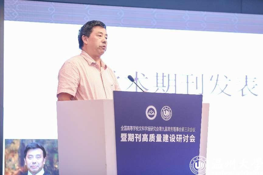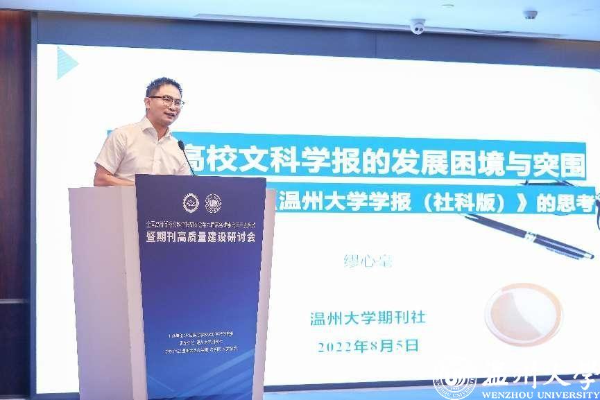 8月4-7日,全国高等学校文科学报研究会第九届常务理事会第三次会议暨期刊高质量建设研讨会在温州召开。会议由全国高等学校文科学报研究会主办,万象城手机网页版登录入口期刊社承办,万象城手机网页版登录入口商学院、法学院、人文学院协办。因疫情原因,本次会议线上线下同步进行,来自北京大学、清华大学、中国人民大学、北京师范大学、南京大学等高校学报的主编、副主编,中国社会科学评价研究院、中国人民大学书报资料中心、《高等学校文科学术文摘》、中国知网等相关机构负责人,以及我校部分编委及老师参与了此次会议,线上线下参与人数近五千人。