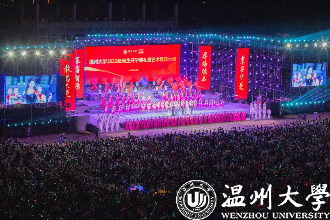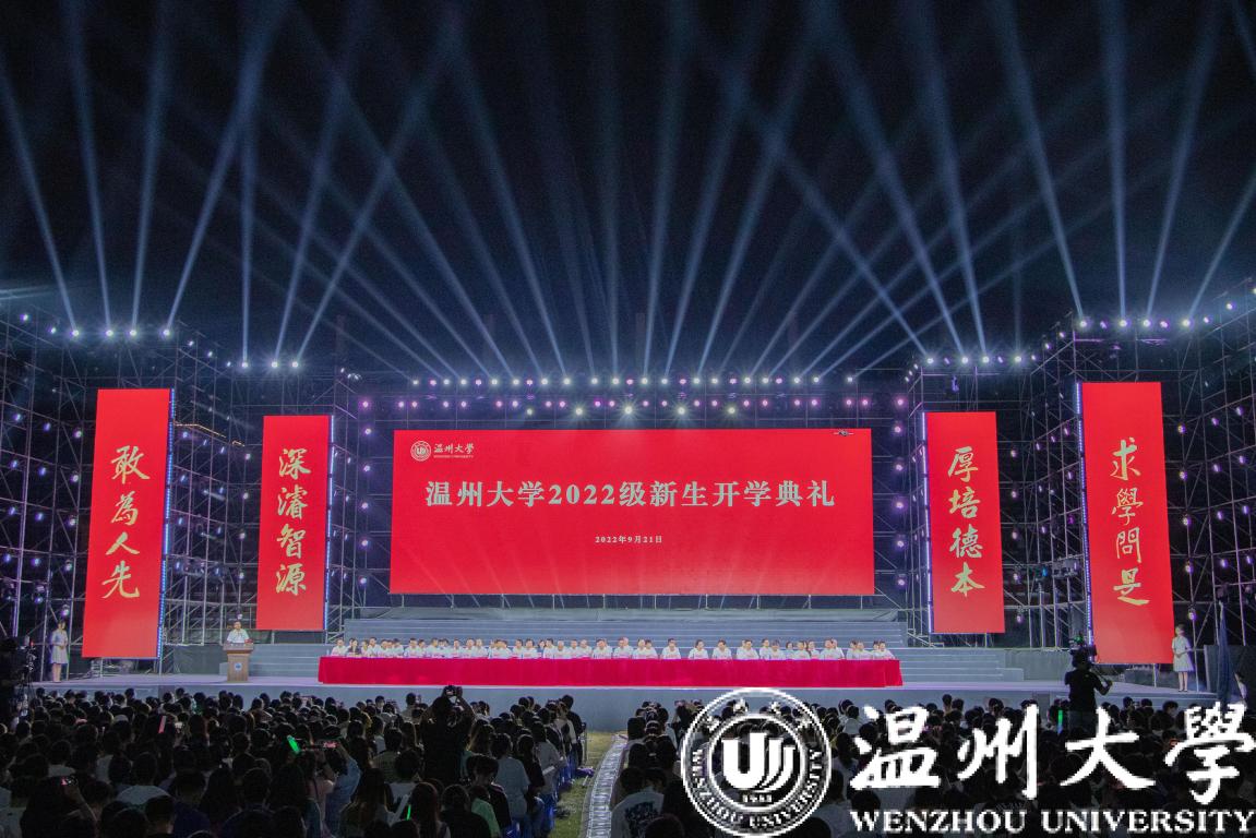 大罗山下,流光溢彩,瓯江之畔,青春激扬。9月21日晚,我校隆重举行2022级新生开学典礼暨艺术思政大课。全体校领导,各学院、部门负责人,新生班主任,全体辅导员,2022级新生,教师代表,校友代表,老生代表等参加典礼。校党委副书记庄兴忠主持。