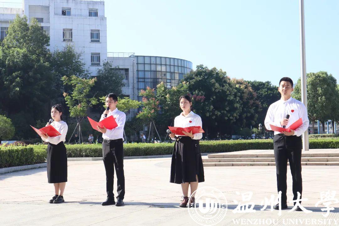 穿岁月风头,伴历史云烟。73年前的10月1日,第一面五星红旗在天安门广场冉冉升起,我们庄严地向世界宣告了中华人民共和国的成立。今日,随着五星红旗飘扬在神州大地上空,国歌声传遍大江南北,我们喜迎二十大,奋进新时代。而每一名温大学子的心中都将怀着这颗炙热的爱国心,在新时代新征程上迎接更加伟大的胜利和荣光!