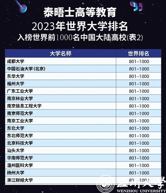 中国大陆共有95所高校上榜: 清华大学排名亚洲第一,北大紧随其后;浙江省有5所高校进入该榜单前1000名。今年,万象城手机网页版登录入口在该项榜单中世界排名在601—800区间,国内排名在35—48区间,在浙江省上榜高校中仅次于浙江大学和浙江师范大学,连续三年排名省内第三位。