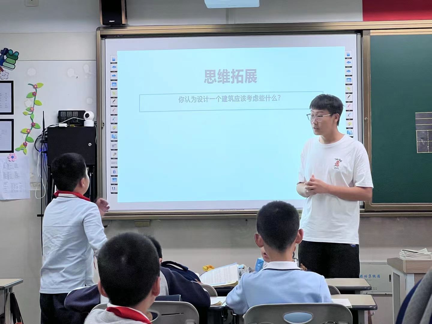 小学生在公益课堂上学习建筑设计思维拓展