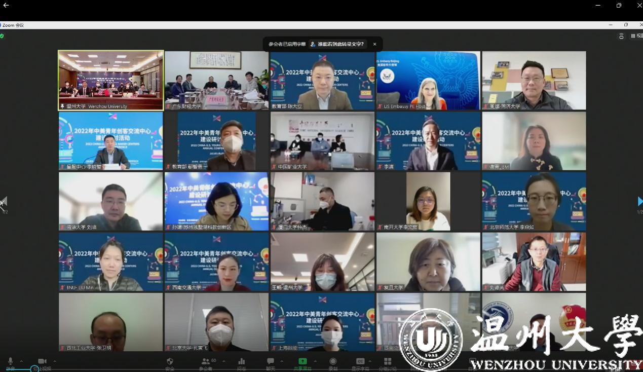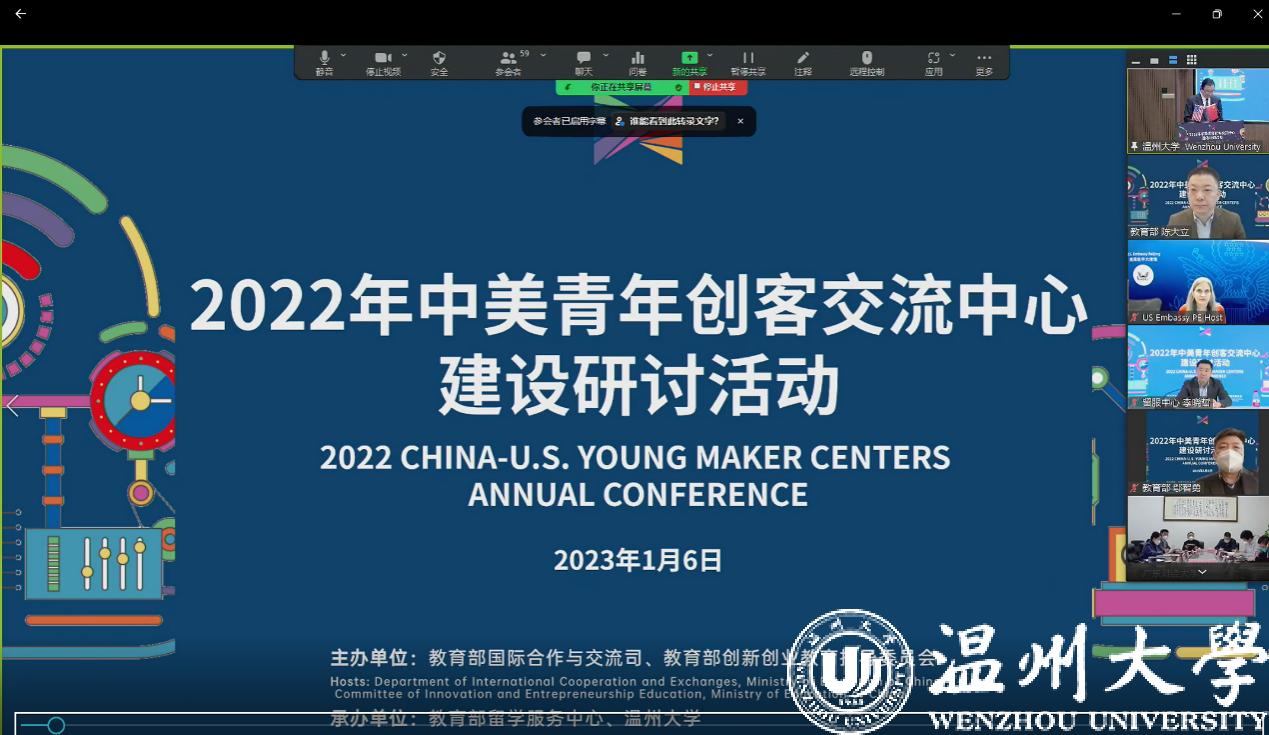 1月6日,2022年中美青年创客交流中心建设研讨活动以线上线下结合的方式于我校成功举办。活动由教育部国际合作与交流司、教育部创新创业教育指导委员会主办,教育部留学服务中心、万象城手机网页版登录入口承办。