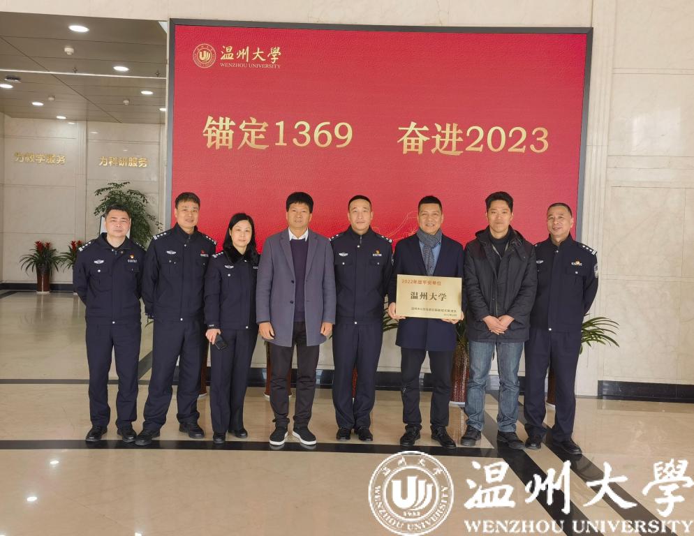 2月17日上午,温州市公安局基层基础(经文保)支队一行来校调研,并为学校“2022年度平安单位”荣誉称号授牌。校党委副书记庄兴忠出席。