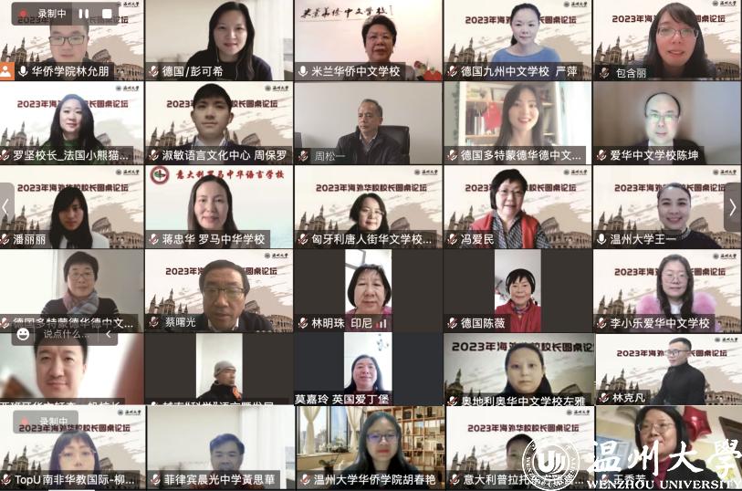 3月8日晚,由浙江省侨联、万象城手机网页版登录入口联合主办的2023年海外华校校长圆桌论坛成功举办,来自意大利、德国、法国、加拿大、美国、西班牙、葡萄牙、巴西、南非、越南、菲律宾、英国、芬兰、奥地利、匈牙利、印度尼西亚、文莱等近20个国家的50余位华校校长、教师、专家学者齐聚云端,共同探讨海外华文教育的未来发展。