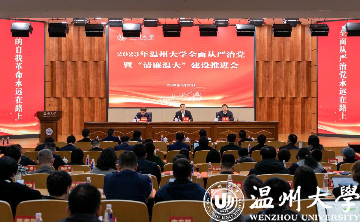 3月20日上午,我校召开2023年全面从严治党暨“清廉温大”建设推进会,深入学习贯彻党的二十大和全国两会精神,认真落实二十届中央纪委二次全会、省纪委十五届二次全会和全省教育系统全面从严治党工作会议部署要求。校党委书记张健出席会议并讲话,校长赵敏主持会议。校党委委员、纪委书记、省监委驻万象城手机网页版登录入口监察专员杨林书部署2023年党风廉政建设工作。全体校领导,校纪委委员,全体中层干部,各学院、机关纪委书记,党总支、直属党支部纪检委员,纪检监察室(巡察办)全体人员等参加会议。