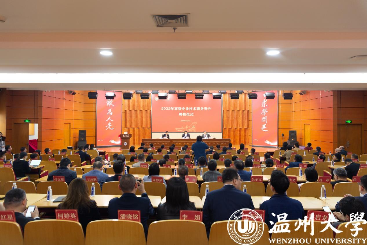 4月7日上午,我校在岩松堂雁山厅举行2022年高级专业技术职务晋升聘任仪式。校党委书记、市委组织部部长张健、校长赵敏出席聘任仪式。