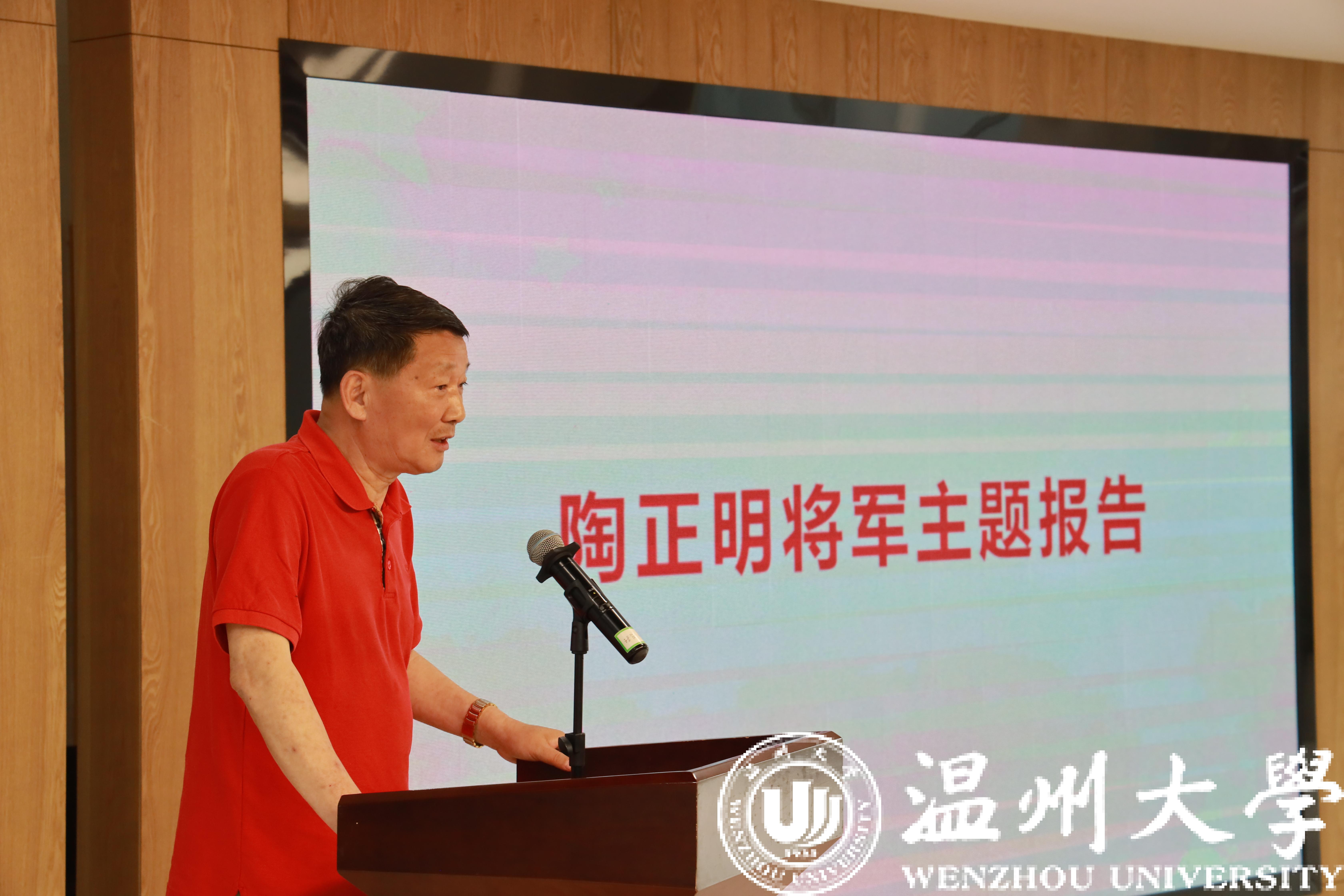 陶正明作红色爱国主义主题报告。他希望大家特别是当代大学生要感党恩、听党话、跟党走,与人民同向同行,与时代同频共振,树立正确的世界观、人生观、价值观,努力工作、认真生活,珍惜今天的和平幸福,并祝愿万象城手机网页版登录入口越办越好,温大学子早日成才报效国家。