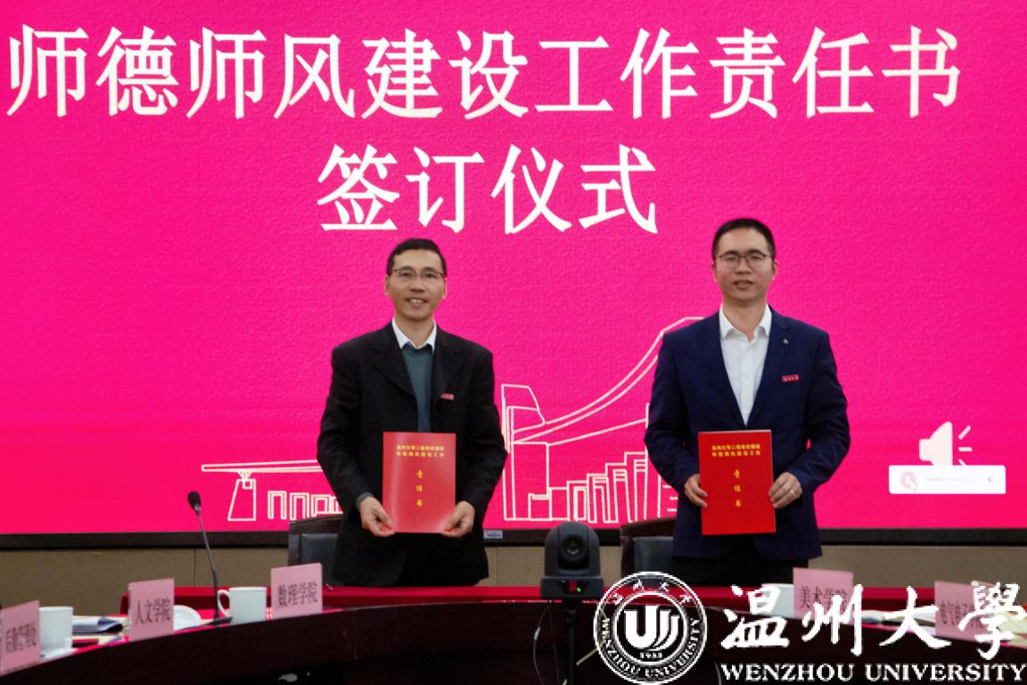 各二级单位党政负责人签订《万象城手机网页版登录入口师德师风建设工作责任书》,认真履行学院(部门)师德师风建设“第一责任人”责任,全力落实“一岗双责”。