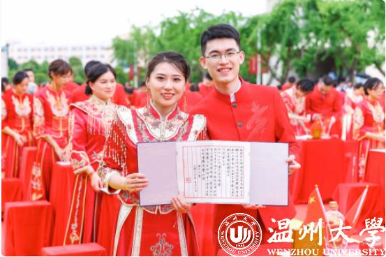 温大伉俪用定制的玉石印章在纪念婚书上烙下自己的幸福印记,许下“执子之手,与子偕老”的誓言,温大人用温大方式讲述最美的爱情故事。最后,全场挥舞国旗,齐唱《歌唱祖国》,用歌声向祖国深情告白,诉说着温大人对祖国与母校的美好祝福,用青春诠释爱国奋斗精神,用行动奏响时代乐章。