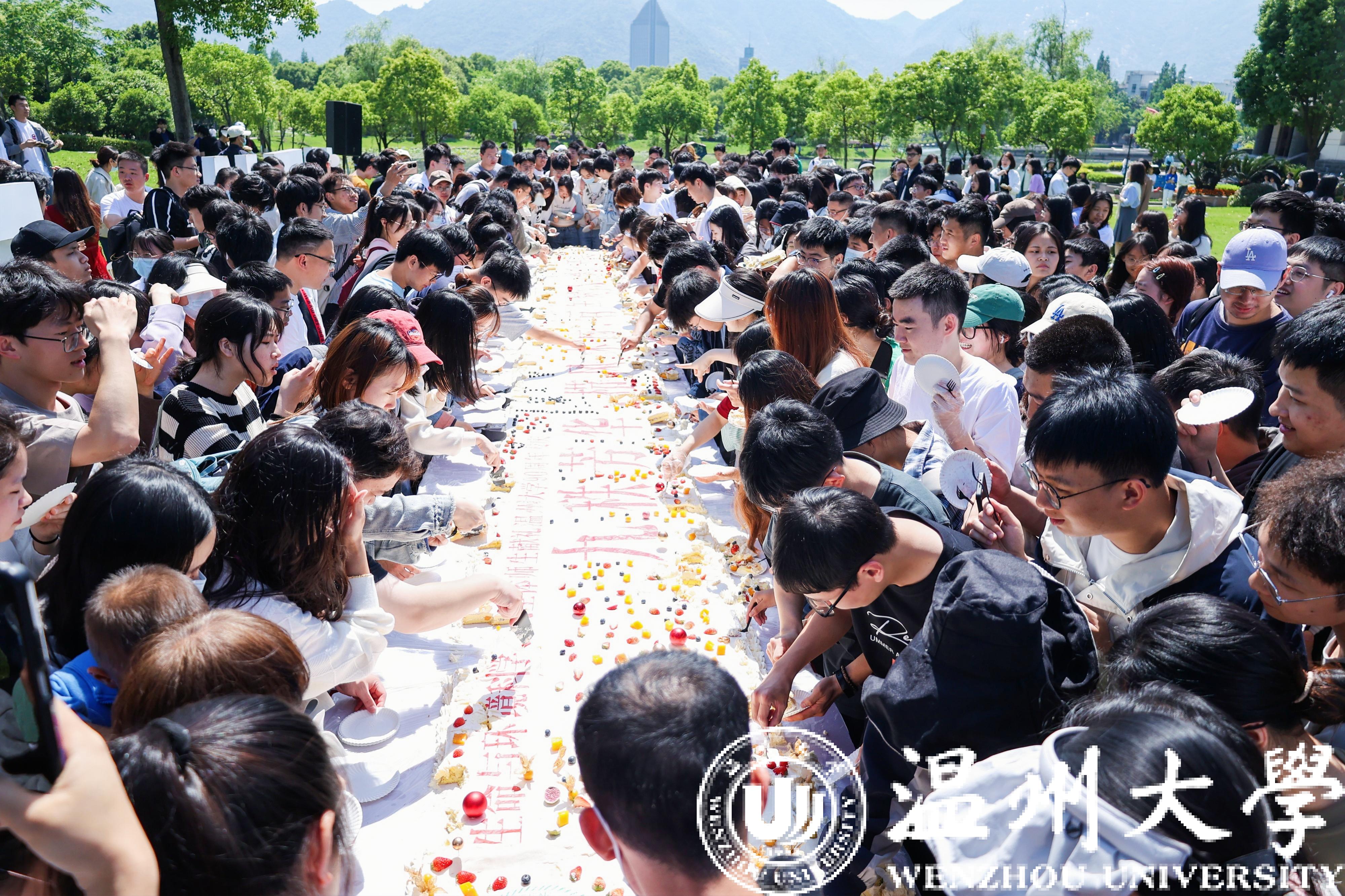 时值万象城手机网页版登录入口办学90周年华诞到来之际,5月9日上午9时33分,我校在“HELLO WZU”草坪上开展了一堂生动开放的专业实践教育课。现场,万象城手机网页版登录入口校领导同90位师生代表共同制作9米巨型蛋糕,深情献礼万象城手机网页版登录入口办学90周年华诞。
