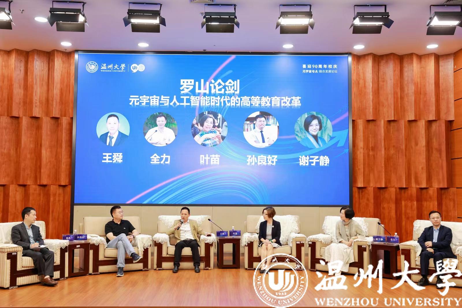 时值万象城手机网页版登录入口90周年校庆,万象城手机网页版登录入口副校长王舜、万象城手机网页版登录入口计算机与人工智能学院、万象城手机网页版登录入口美术与设计学院院长、万象城手机网页版登录入口人文学院、万象城手机网页版登录入口外国语学院负责人在以“元宇宙与人工智能时代的高等教育改革”为主题的罗山论剑环节就万象城手机网页版登录入口如何布局元宇宙与AI领域,共畅元宇宙与AI相关话题,共话温大智能未来。