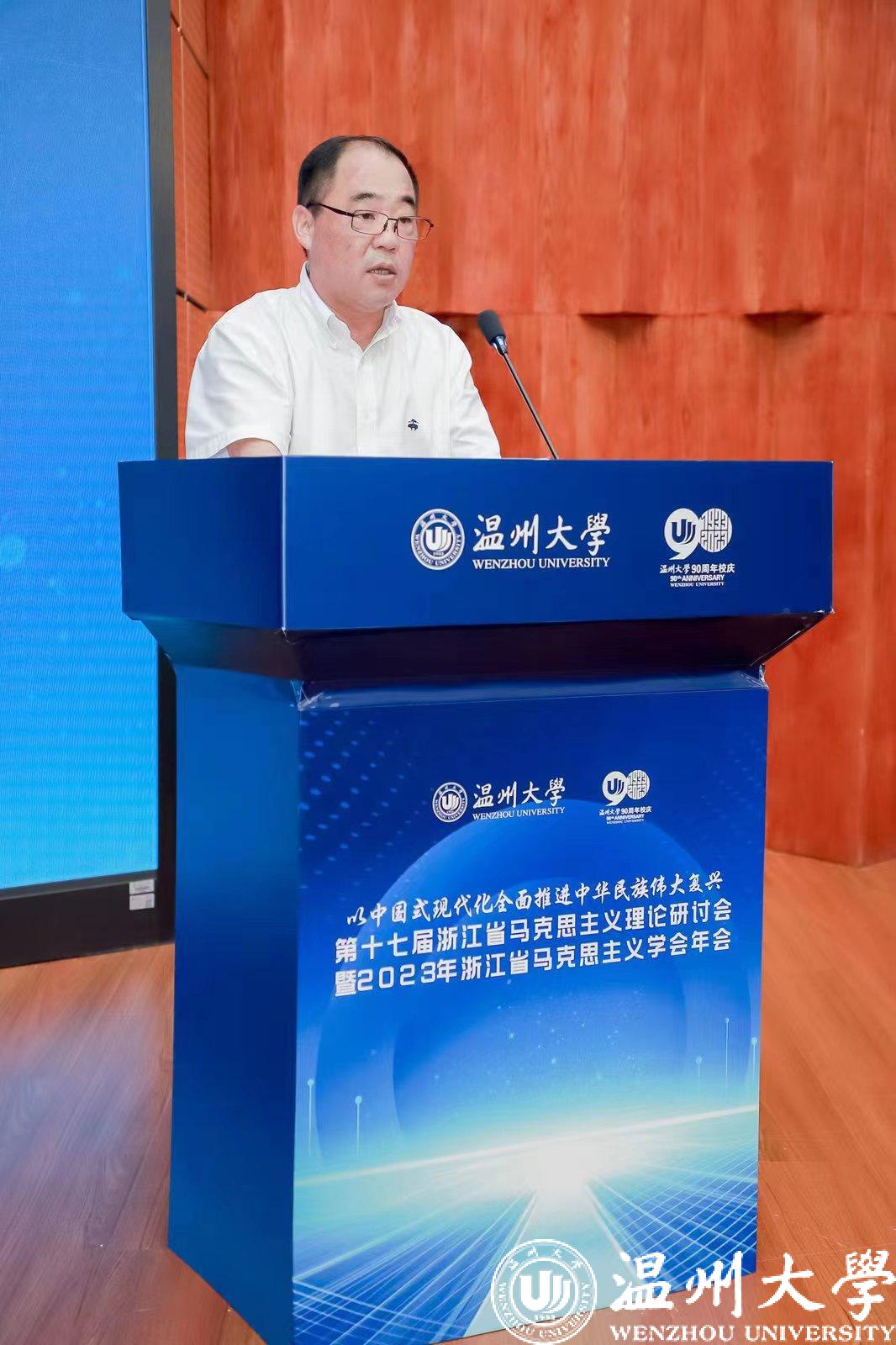 温州市委宣传部副部长魏平生在致辞中指出,浙江正在高质量发展中奋力推进中国特色社会主义共同富裕先行和省域现代化先行,温州也在奋力续写创新史、走好共富路,做强做大“全省第三极”,勇当“两个先行”开路先锋,打造“千年商港,幸福温州”。他期望省内外马克思主义理论研究者多研究温州这个现象级城市,为温州在新阶段谋新篇、开新局贡献智慧力量。