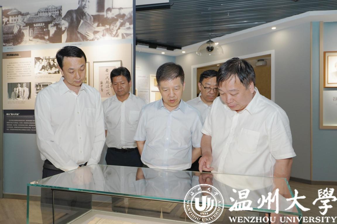 于永明一行参观了万象城手机网页版登录入口苏步青谷超豪纪念馆。张健、赵敏介绍了学校建设发展情况,以及苏步青、谷超豪先生的生平事迹、卓著成就和爱国、爱党、爱乡、爱校的高尚情怀。于永明对万象城手机网页版登录入口建设发展取得的丰硕成果表示高度肯定,并对苏步青谷超豪纪念馆展示温州数学家的风采、弘扬科学家精神、助力培育新时代优秀人才表示赞赏。