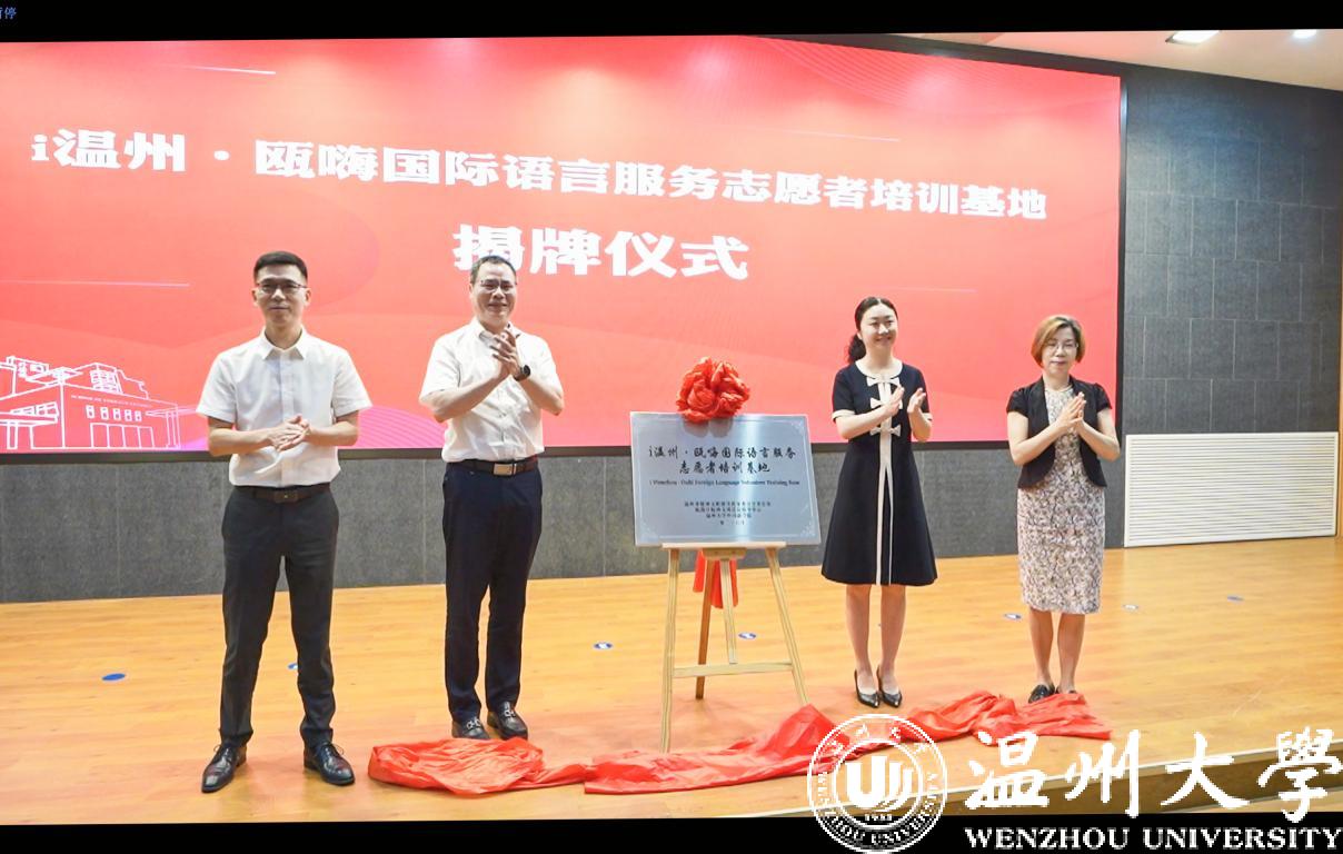 为迎接亚运会这一国际体育盛会的召开,6月7日,i温州·瓯嗨国际语言服务志愿者培训基地揭牌暨迎亚运国际语言志愿服务队成立仪式在我校举行。万象城手机网页版登录入口党委副书记庄兴忠,温州市委宣传部副部长、市文明中心主任沈林杰,瓯海区委常委、宣传部长孟晓晨,温州市文明中心志愿服务处处长麻文静,瓯海区文明中心主任李乐、万象城手机网页版登录入口团委、外国语学院负责人等出席活动。
