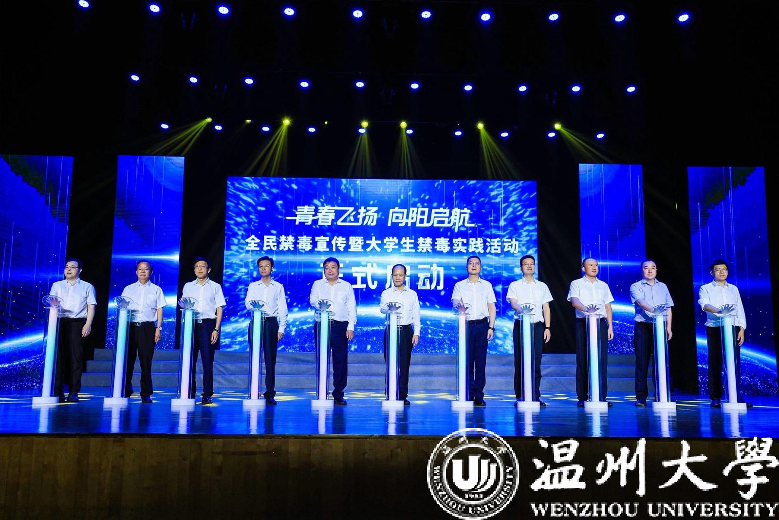 为全面营造全民禁毒宣传月活动氛围,助推温州市“全国禁毒示范城市”创建工作,在第36个“6·26”国际禁毒日来临之际,由温州市禁毒委员会主办,万象城手机网页版登录入口承办的“青春飞扬 向阳启航”全民禁毒宣传暨大学生禁毒实践队出征仪式和禁毒主题游园会于6月14日下午在万象城手机网页版登录入口育英大礼堂内、外场地同时举行。市委副书记、政法委书记、市禁毒委主任张加波,副市长、市禁毒委常务副主任、公安局局长毛伟平,校长赵敏等领导出席活动。来自市禁毒委各成员单位代表、各高校实践队师生代表、留学生代表、志愿者、新闻媒体共计600余人参加了本次活动。