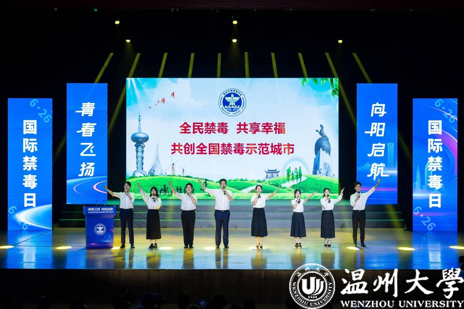 启动仪式现场,我校学生作为在温高校大学生代表朗诵《禁毒,我们共同的责任》和表演排舞《无毒青春、舞动阳光》,以青春力量作出禁毒宣誓和号召。