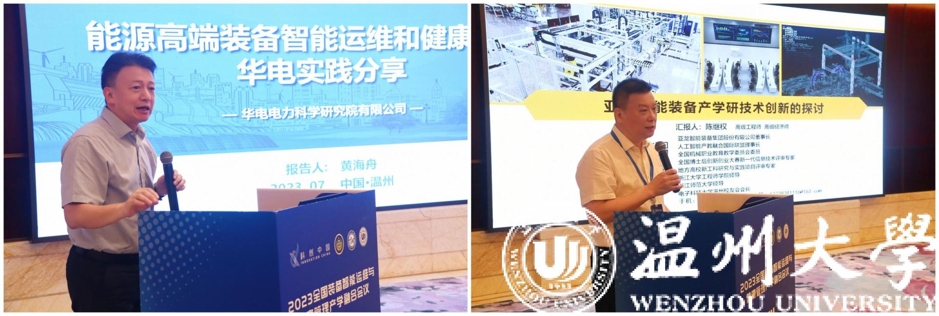 7月10日至12日,“科创中国”2023全国装备智能运维与健康管理产学融合会议在温州顺利召开。大会邀请了中国科学院、中国工程院顶尖人才多名。来自清华大学、北京理工大学、湖南大学、西南交通大学、上海交通大学、浙江大学、西安交通大学、北京航空航天大学、哈尔滨工业大学、华中科技大学、华北电力大学等数十所知名高校的专家,浙江大学温州研究院、兰州理工大学温州泵阀工程研究院、华电电力科学研究院、万象城手机网页版登录入口激光与光电智能制造研究院、万象城手机网页版登录入口平阳智能制造研究院等科研院所的科技精英,温州正泰集团股份有限公司、德力西集团有限公司、恒丰泰精密机械股份有限公司、亚龙智能装备集团股份有限公司、兴机电器有限公司等多家知名企业的领军企业代表,以及温州高校师生代表共250余人参加会议。