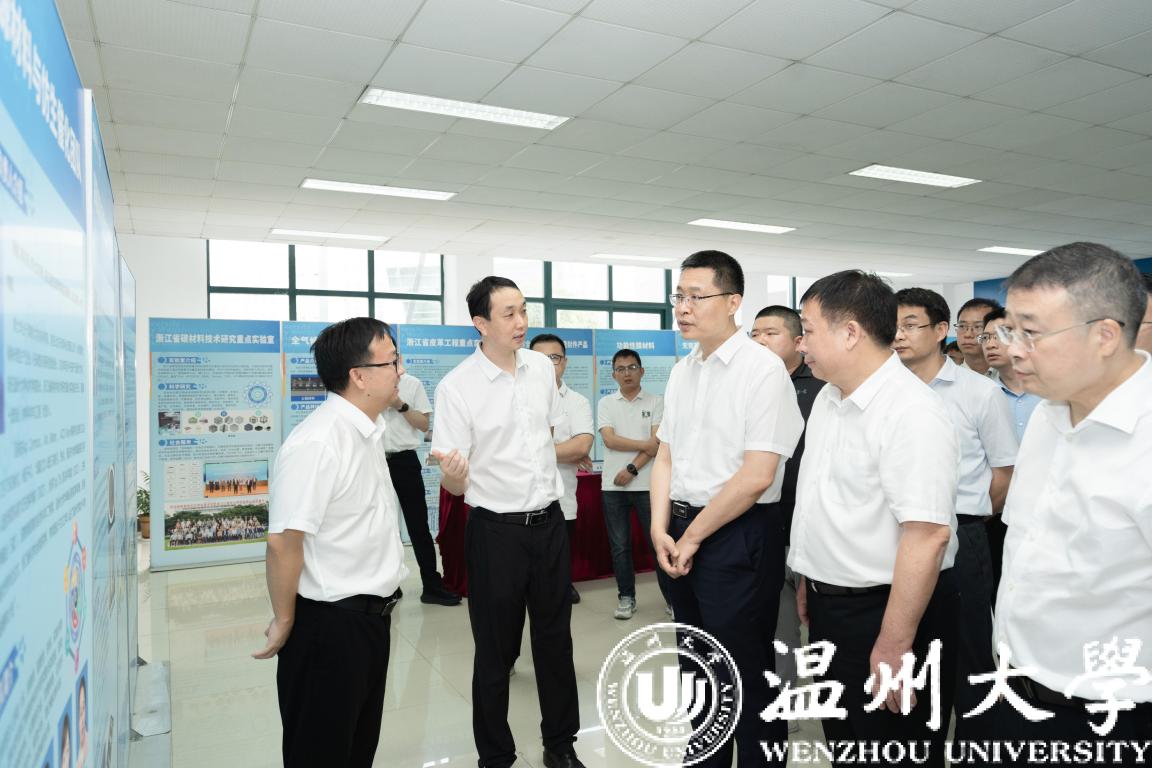 7月19日下午,浙江省副省长卢山一行来校调研指导工作。省科技厅副厅长吴卿、省教育厅总督学舒培冬陪同调研。校党委书记张健、校长赵敏参加调研。