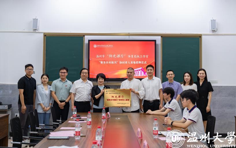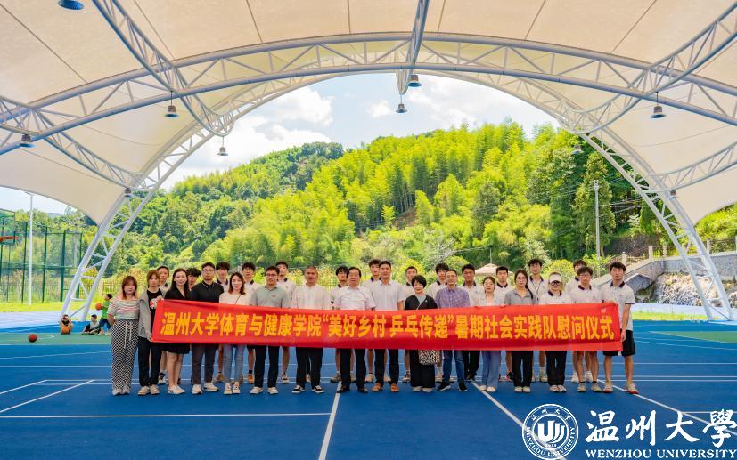 7月18日,副校长蔡曙光一行来到苍南县莒溪镇莒溪小学看望慰问体育与健康学院“美好乡村 乒乓传递”暑期社会实践队。蔡曙光观摩了实践队的体育趣味教学课堂,关心关怀实践队员的授课情况并提出相应建议。在慰问座谈会上,蔡曙光参与了体育学院社会实践基地与阳光课厅协同育人基地的授牌仪式。他表示,此次依托以学校、俱乐部和地方三方共建的资源平台,党建引领服务乡村振兴“双百双千”行动将发挥更大的作用。最后,蔡曙光为实践队队员发放了慰问物资,鼓励同学们规范、安全地开展后续活动。