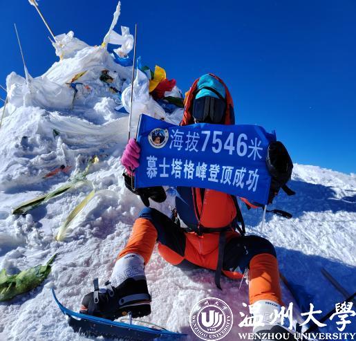 北京时间2023年7月12日上午10点15分,我校体育与健康学院2021级研究生晁新新,成功登顶海拔7546米西昆仑山三大主峰之一的慕士塔格峰,获“国家一级登山运动员”称号,并在登顶时为万象城手机网页版登录入口办学90周年献上祝福。