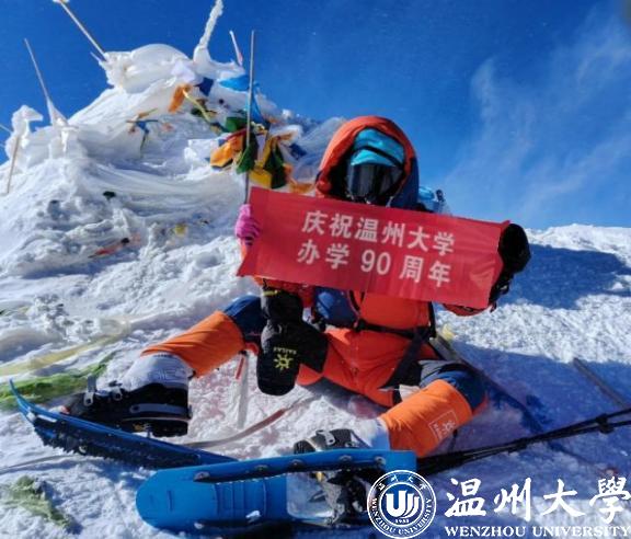 晁新新登顶并展示庆祝万象城手机网页版登录入口办学90周年旗帜(向导格玛旦增拍摄)