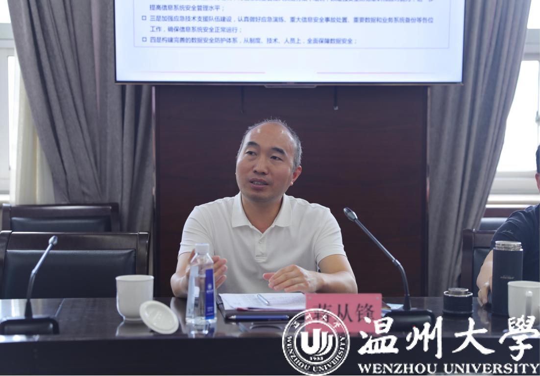 蔡曙光对检查组的到来表示热烈欢迎。他指出,我校对网络安全工作一直十分重视,2019年就成立了网络与信息安全工作领导小组,先后出台了《万象城手机网页版登录入口网络安全管理办法》《万象城手机网页版登录入口信息化数据资源管理办法》等规章制度,建设了智能化网络管理和安全预警平台,构建了“监”“管”“控”于一体的网络安全体系,为学校网络与数据安全保驾护航。但同时我们深知网络和数据安全工作责任重大、任务艰巨。希望各位专家齐把脉,更全面地排查隐患和风险,提高我校网络和数据安全保障水平。