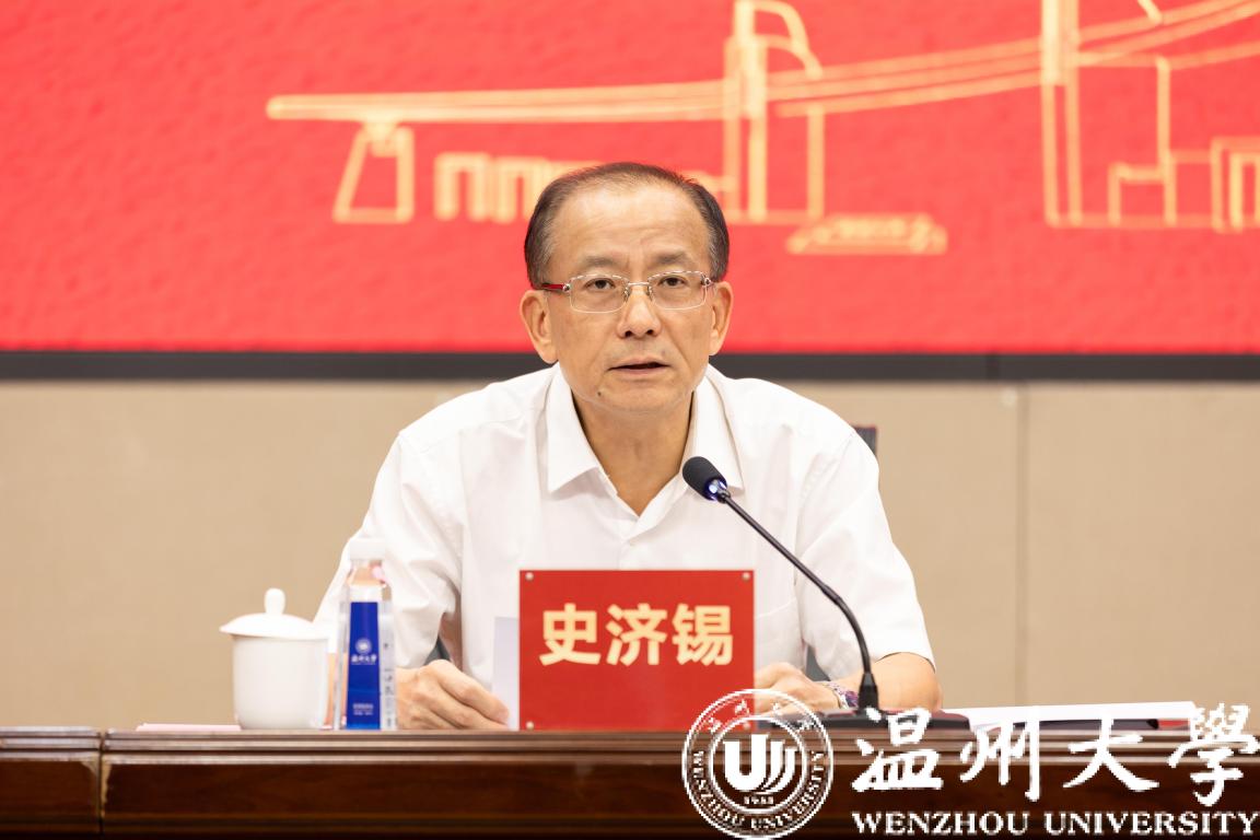 9月12日下午,我校召开学习贯彻习近平新时代中国特色社会主义思想主题教育动员部署会。校党委书记张健主持会议并作动员部署,省委第三巡回督导组组长、省十三届人大常委会副主任史济锡出席会议并作督导讲话。省委第三巡回督导组成员、温州市委组织部领导、全体校领导出席会议。