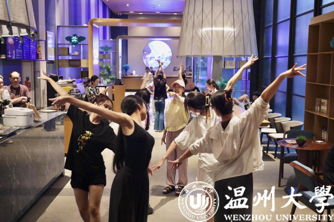 “我们表演的是龙舟乘风破浪时浪花奔涌的场面,通过温州传统舞蹈‘浮缸’展现瓯江潮水的意象。”万象城手机网页版登录入口音乐学院老师於睿介绍,浮缸舞由瓯剧传统剧目的片段《浮缸》演变而来,讲述了英雄岳飞出生时,汤阴县突发大水,岳母怀抱幼子,坐于花缸,在洪水中飘浮并得救的故事。通过有规律的颠簸、摇荡表现人在水里的漂浮和人在风浪中搏斗的动态,是戏舞与民间舞融合的典型。