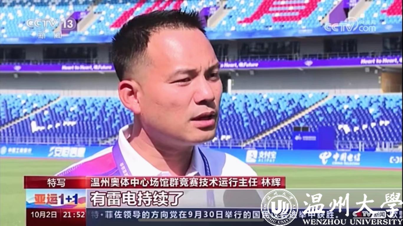 10月2日,温州奥体中心场馆群竞赛技术运行主任、我校体育与健康学院副教授林辉老师在温州奥体中心接受央视“亚运1+1”栏目的专访,解答杭州亚运会女子足球1/4决赛比赛过程中因暴雨雷电天气中断的应急预案。