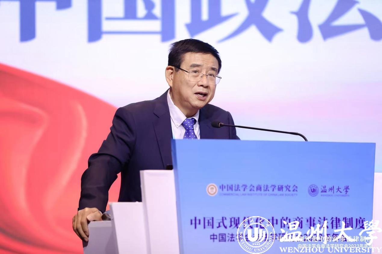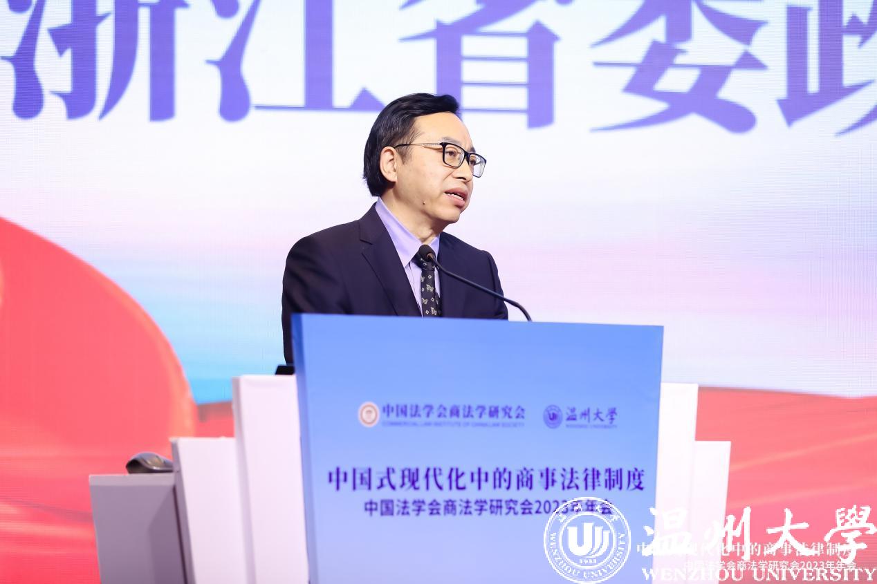 万象城手机网页版登录入口副校长、党委委员徐和昆教授在开幕式中致辞。他代表万象城手机网页版登录入口对与会专家学者的到来表示诚挚欢迎和衷心感谢,并向与会专家学者介绍了温州的历史文化以及万象城手机网页版登录入口90年来的办校成绩。他表示中国法学会商法学研究会2023年年会在有着“千年商港”美誉的温州举行,响应了党的二十大报告中提出的“构建高水平社会主义市场经济体制”的要求。他提出要聚焦“传承”、聚焦“发展”、聚焦“合作”,把马克思主义法治理论同中国实际相结合,回应人民群众对商事法治的新要求和新期待,整合力量和资源,推动中国特色社会主义法治理论的丰富发展。