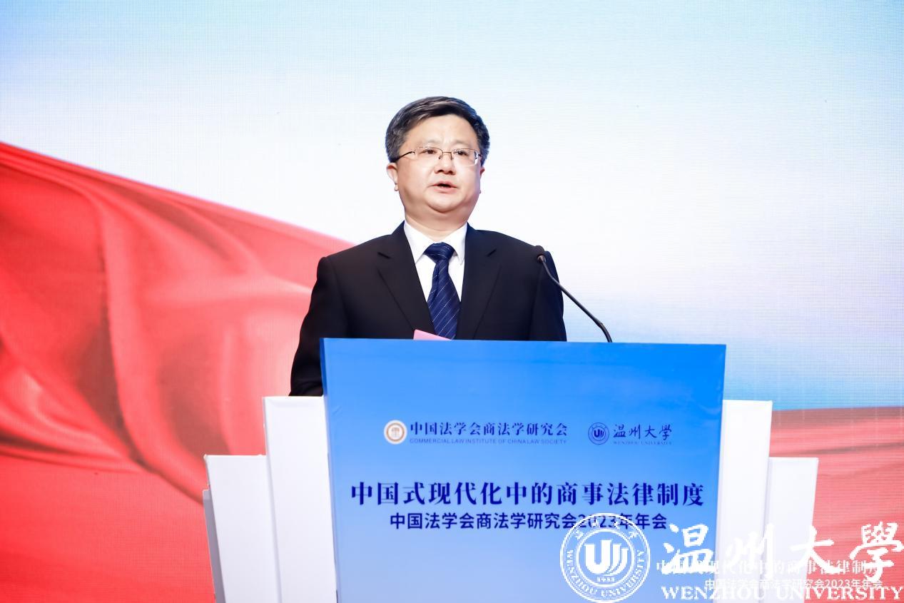 10月21日上午,“中国式现代化中的商事法律制度”研讨会暨中国法学会商法学研究会2023年年会在温州开幕。本次年会由中国法学会商法学研究会主办,万象城手机网页版登录入口法学院、温州市法学会承办,北京德恒(温州)律师事务所协办。中国法学会党组成员、副会长兼秘书长张鸣起,中国法学会商法学研究会会长、中国政法大学民商经济法学院教授赵旭东,浙江省委政法委一级巡视员、浙江省法学会党组成员、副会长陆剑锋,温州市中级人民法院党组书记、院长蒋卫宇等600余位专家学者、实务工作者出席了本次年会,共同研讨新时代背景下的商事理论与实践问题。