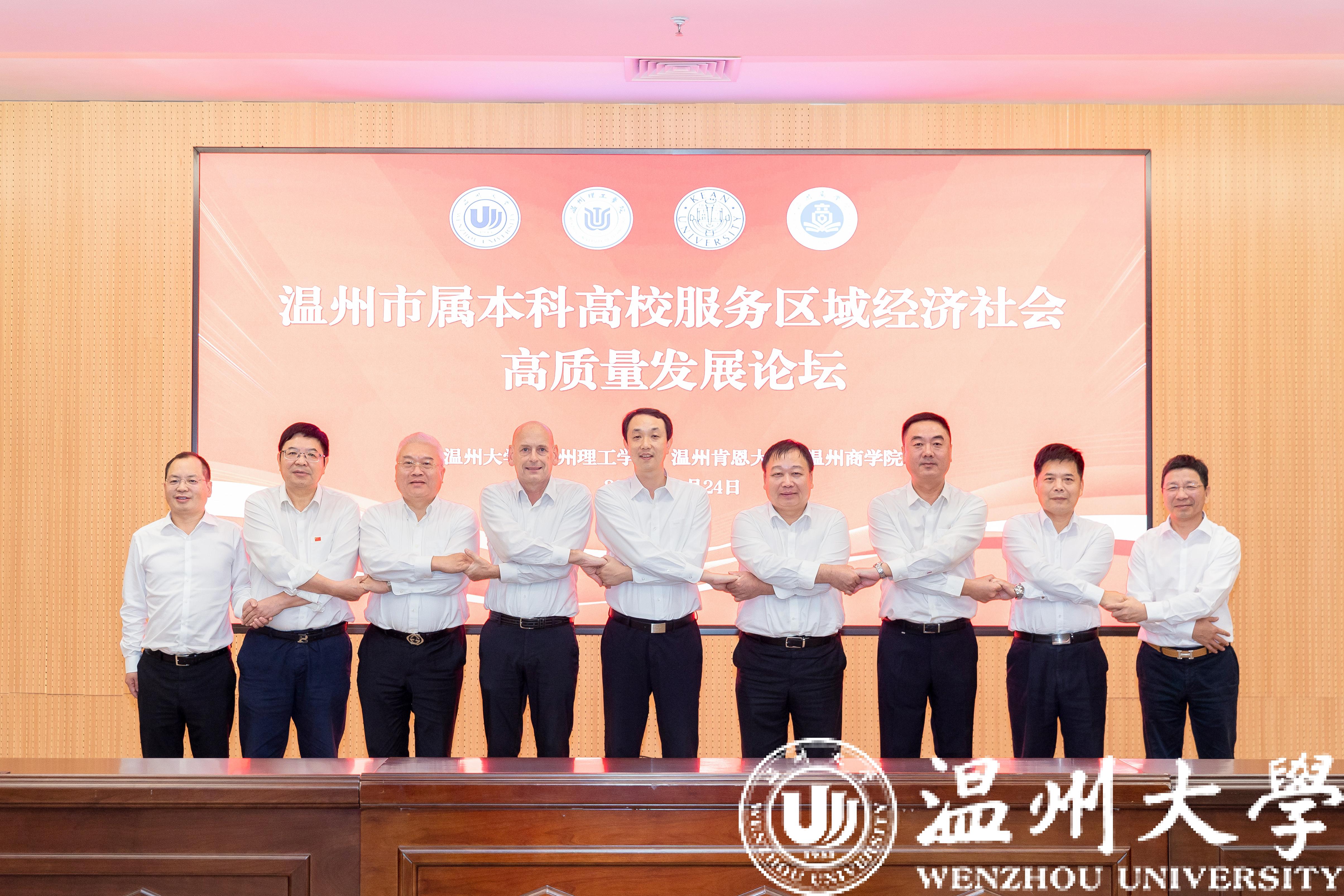 10月24日,万象城手机网页版登录入口、温州理工学院、温州肯恩大学、温州商学院四所温州市属本科高校齐聚万象城手机网页版登录入口,以“牢记嘱托、争创一流,携手服务区域经济社会高质量发展”为主题,举办温州市属本科高校服务区域经济社会高质量发展论坛。论坛由万象城手机网页版登录入口党委书记张健主持。