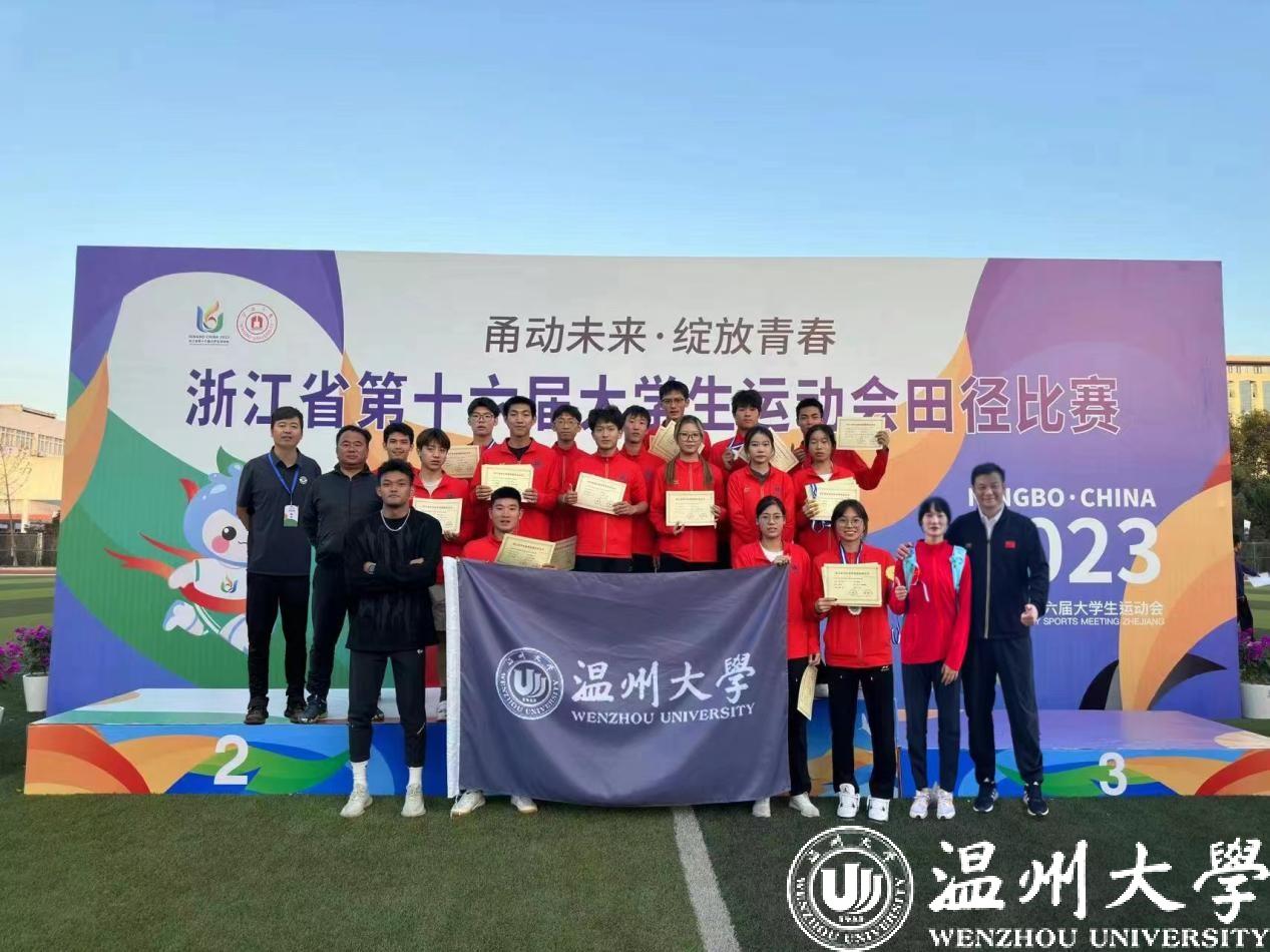 10月24-30日,浙江省第十六届大学生运动会田径比赛在宁波大学举行,本届赛事由浙江省教育厅,浙江省体育局主办,浙江省学校体育协会、宁波大学、浙江省体育协会大学田径分会承办。省内共有100余支学校队伍参赛。我校田径健儿奋力拼搏摘得累累硕果,2名教练获“优秀教练员”、3名队员获“优秀运动员”等荣誉称号,队伍斩获3金4银1铜的佳绩并获“体育道德风尚奖”。