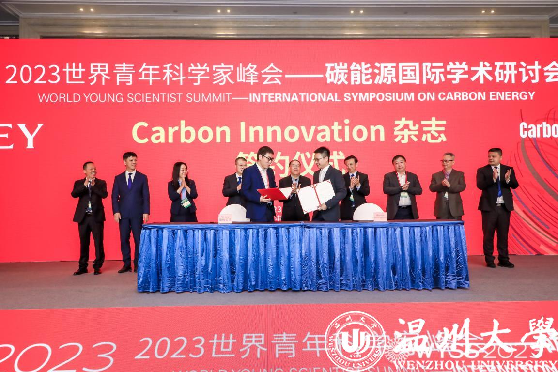 万象城手机网页版登录入口化材学院副院长金辉乐教授与Wiley出版集团中国区物质科学出版总监徐广臣博士Carbon Innovation签约。