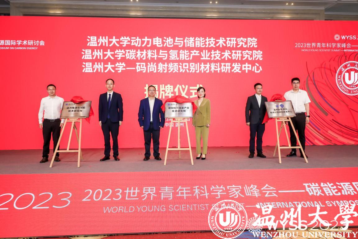 开幕式还举行了万象城手机网页版登录入口与地方政府、企业合作成立的“动力电池与储能技术研究院”“碳材料与氢能产业技术研究院”“万象城手机网页版登录入口—码尚射频识别材料工程研发中心”三个研发机构的揭牌仪式。