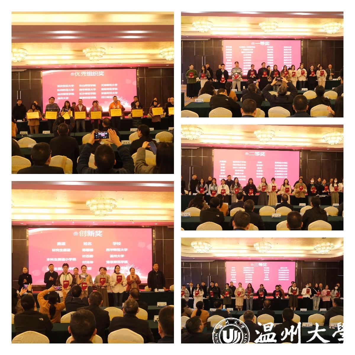 12月1日-3日,由中国青少年科技辅导员协会主办的第十一届全国科学教育专业师范生教学技能创新大赛本科和研究生赛道决赛在西华师范大学举行。温大学子共获11个一等奖、1个二等奖,3个三等奖,1个赛事最高奖——创新奖以及最佳组织奖。其中一等奖的数量和获奖率连续四年居全国所有参赛高校本科赛道之首。