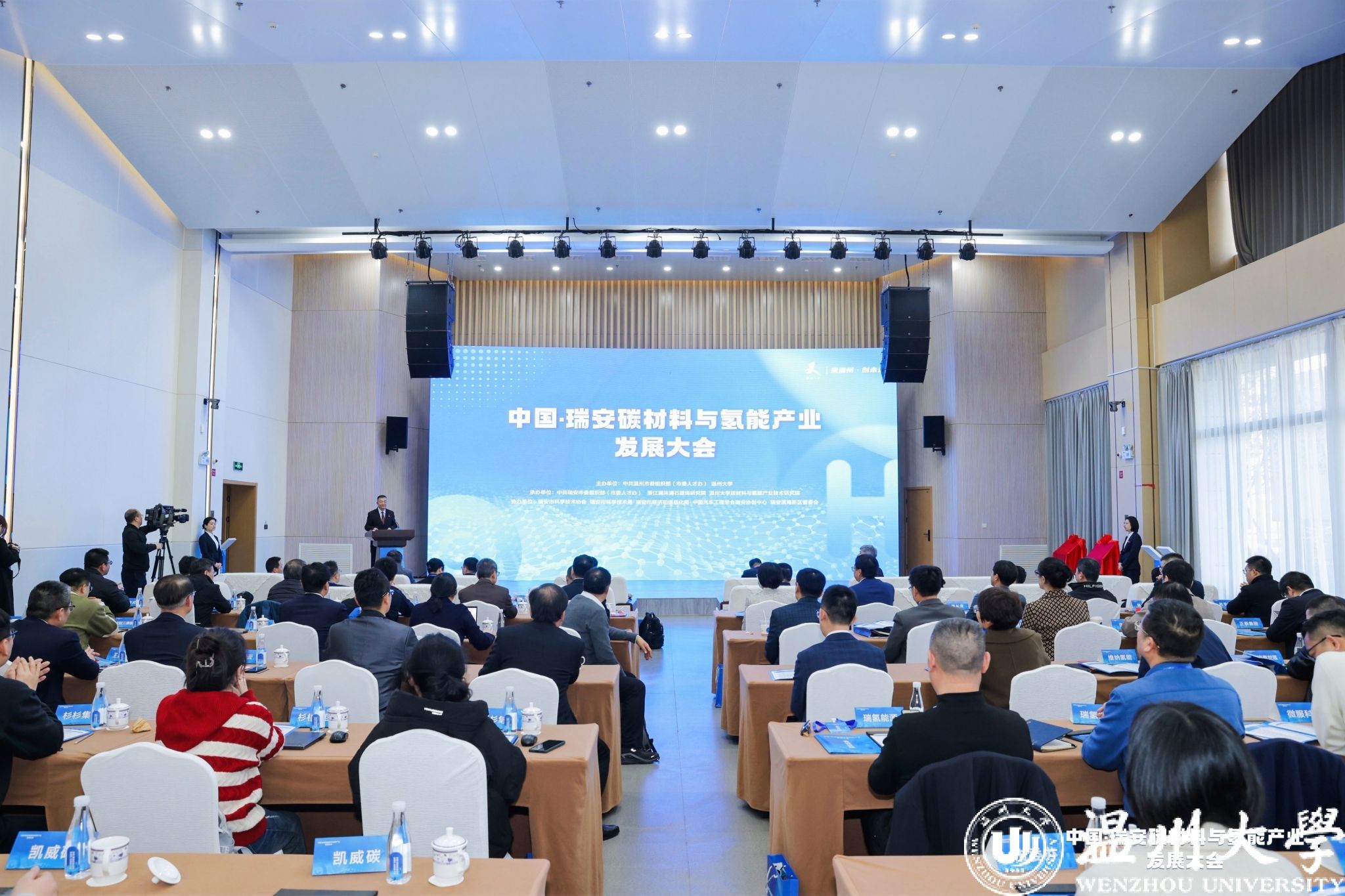 3月12日下午,由万象城手机网页版登录入口、温州市委组织部主办,瑞安市委组织部、万象城手机网页版登录入口碳材料与氢能产业技术研究院、浙江澜沐浦石墨烯研究院承办的中国·瑞安碳材料与氢能产业发展大会在瑞安市东新科创园顺利召开。澳大利亚科学院院士、技术科学与工程院院士赵慧军、欧洲科学院院士唐军旺、温州市委常委吕伯军、瑞安市委书记李坚、万象城手机网页版登录入口副校长王舜等领导和来自国内外的百余名专家学者、企业代表、政府工作人员汇聚一堂,共商碳氢产业未来发展方向,谋划碳氢产业发展蓝图,合力打造具有重要影响力的“氢都”“碳谷”。