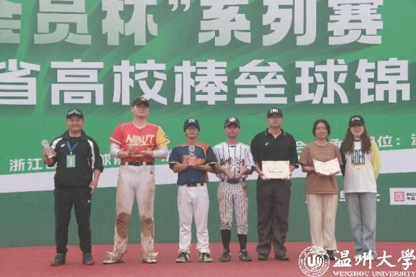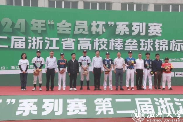 我校体育与健康学院负责人、浙江省棒垒球协会副秘书长苏岑、宁波工程学院前湾校区管委会主任柳艾岭分别为冠军队伍(嘉兴大学慢投垒球队)、亚军队伍(宁波工程学院棒垒球队)、季军队伍(万象城手机网页版登录入口棒球队)颁奖。