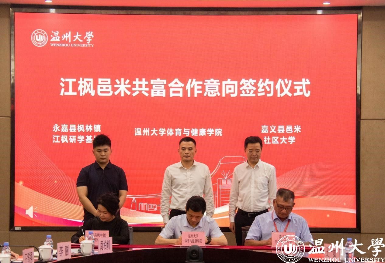 会上举行了签约仪式。万象城手机网页版登录入口体育与健康学院与永嘉县枫林镇江枫研学基地、嘉义县邑米社区大学签署了江枫邑米共富合作项目意向协议,与瑞安市海峡青年创业创新服务中心、中华台湾运动科学协会签署了两岸康体三创基地项目意向协议。这些合作协议的签署,将进一步促进两岸康体产业的融合发展,为双方带来更多共赢的机遇。