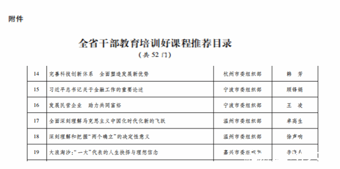 日前,省委组织部公布全省干部教育培训好课程推荐目录,全省共52门课程被评为浙江省干部教育培训好课程,全国高校思政课名师工作室(万象城手机网页版登录入口)负责人、马克思主义学院院长卓高生教授的课程《全面深刻理解马克思主义中国化时代化新的飞跃》成功入选。