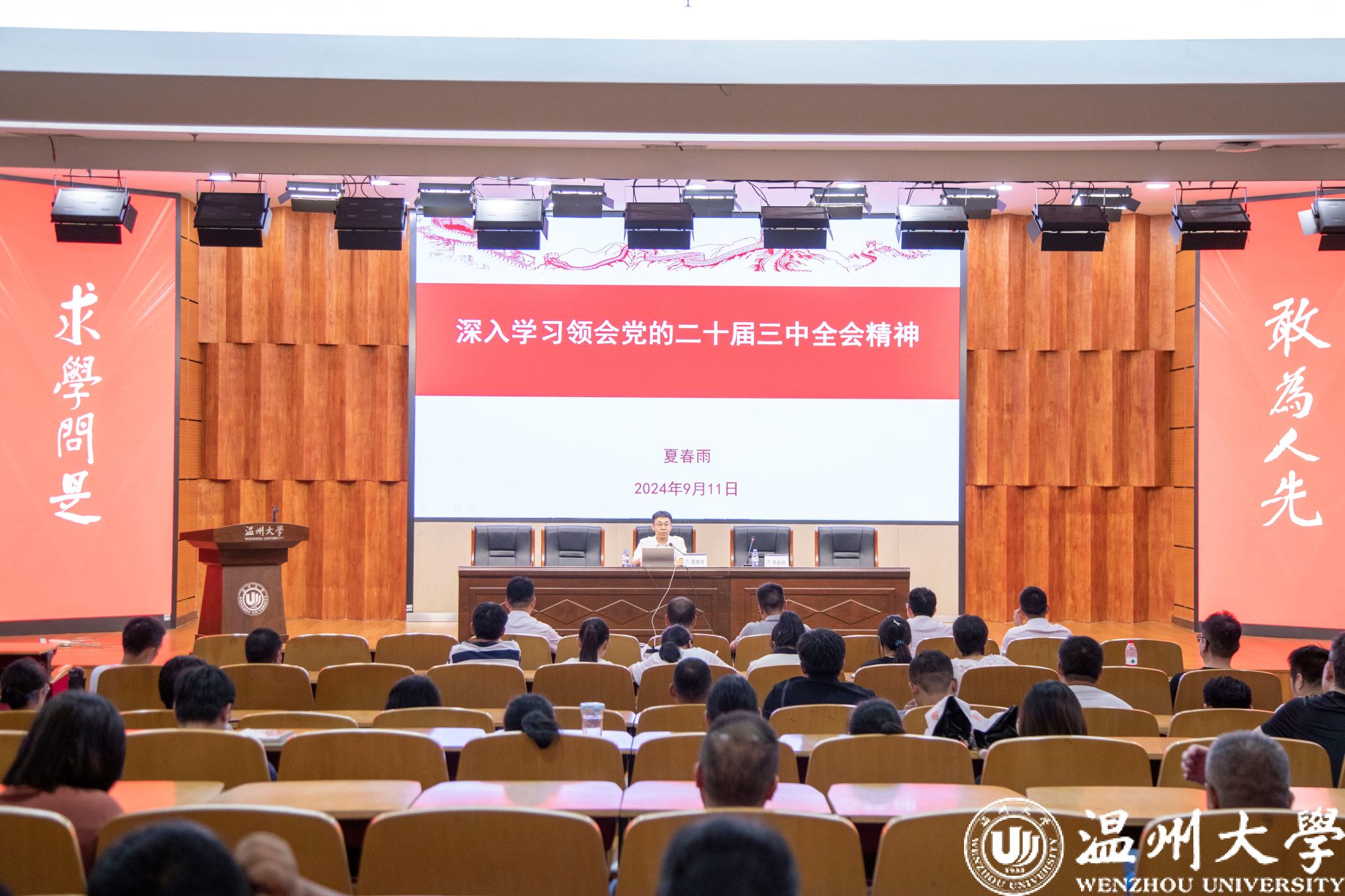启动仪式上,校宣讲团成员、校党委委员、组织部部长夏春雨教授受邀作《深入学习领会党的二十届三中全会精神》专题辅导报告。生环学院负责人详细解读“五学五讲五示范”活动方案并作工作部署。