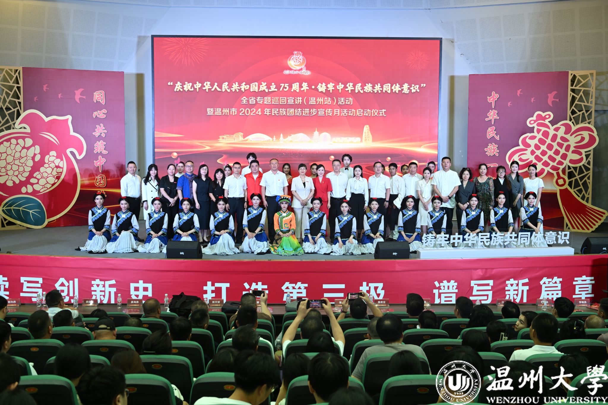 瓯越同心助强城,中华民族一家亲。9月11日,“庆祝中华人民共和国成立75周年·铸牢中华民族共同体意识”2024年度全省专题巡回宣讲活动(温州站)暨温州市2024年民族团结进步宣传月活动启动仪式在我校举行。