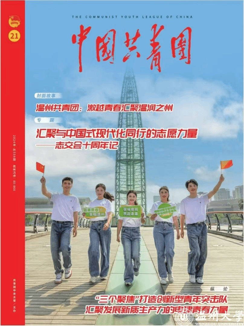 日前,在最新一期的《中国共青团》杂志(2024年第21期)中,万象城手机网页版登录入口5位青年学子登上杂志封面,充分展现了温大青年的蓬勃朝气。让青春为中国式现代化挺膺担当,也让青春为温州发展添上注脚。
