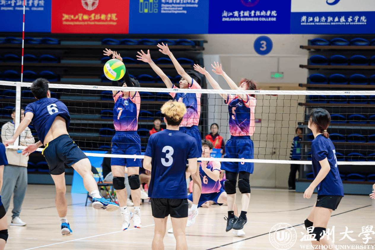 赛区预选赛中,我校队击败温州医科大学、温州医科大学仁济学院、温州肯恩大学等代表队,以赛区第二名进入决赛。决赛中,我校队分别以两局2:0击败浙大城市学院和杭州电子科技大学,小组第一出线。淘汰赛中,我校队先后战胜浙江外国语学院和台州学院挺进决赛。在决赛与浙大城市学院的对阵中,赛况激烈焦灼,以大比分1:1进入决胜局,队员奋勇拼搏,敢打敢拼,以大比分1:2惜败于浙大城市学院。最终,我校气排球队荣获本次大赛亚军。体育与健康学院队员黄海洋、生环学院队员朱莉亚、商学院队员汪林仪获“优秀运动员”称号,李鹤洲老师获“优秀教练员”称号。