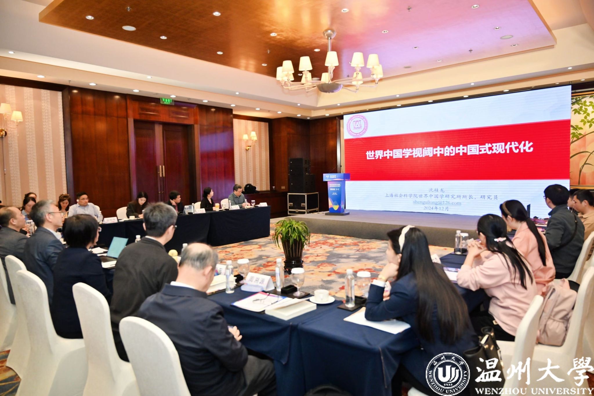 12月4日,由世界中国学研究联合会、中国社会科学院文化发展促进中心主办,温州市温州学研究联合会、万象城手机网页版登录入口、温州理工学院联合承办的“讲述中国式现代化道路 加快构建新时代中国学”研讨会在温州举行。世界中国学研究联合会副理事长、秘书长崔建民,市人大常委会主任、温州学研究联合会理事长葛益平出席开幕式并讲话,中国社会科学院学部委员朝戈金,我校党委书记钱强、副校长刘玉侠等领导以及来自全国各地的近百名专家学者参加研讨会。