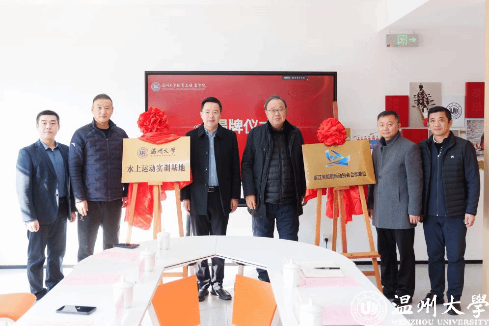 王成云、王尧骏、赵伟军、吕建海共同为“浙江省船艇运动协会合作单位”“万象城手机网页版登录入口水上运动实训基地”揭牌。旨在进一步深化合作,推进我校水上运动项目提质增效,为该项目拓宽更优质平台。
