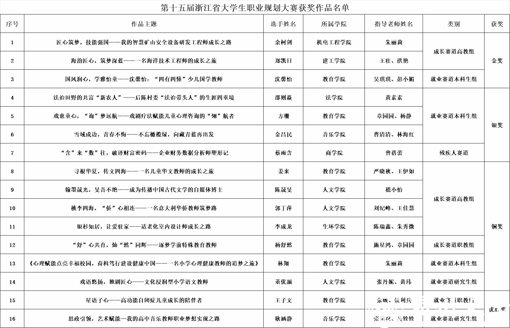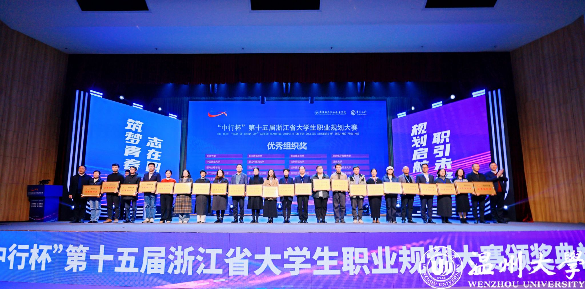 12月25日至27日,由省教育厅主办,省教育发展中心和浙江经济职业技术学院承办的“中行杯”第十五届浙江省大学生职业规划大赛在杭州举行。经过激烈角逐,我校共斩获3金、4银、7铜,5位老师被授予大赛优秀指导老师,学校蝉联优秀组织奖。