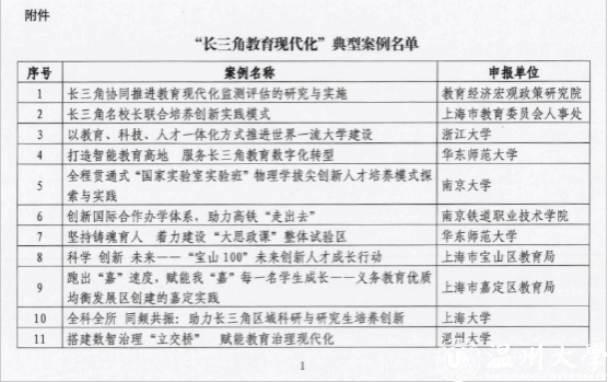 2月26日,教育部发展规划司公布“长三角教育现代化”典型案例,我校报送的“搭建数智治理‘立交桥’ 赋能教育治理现代化”案例成功入选,并收录入“长三角教育现代化监测评估典型案例100例”结集出版。